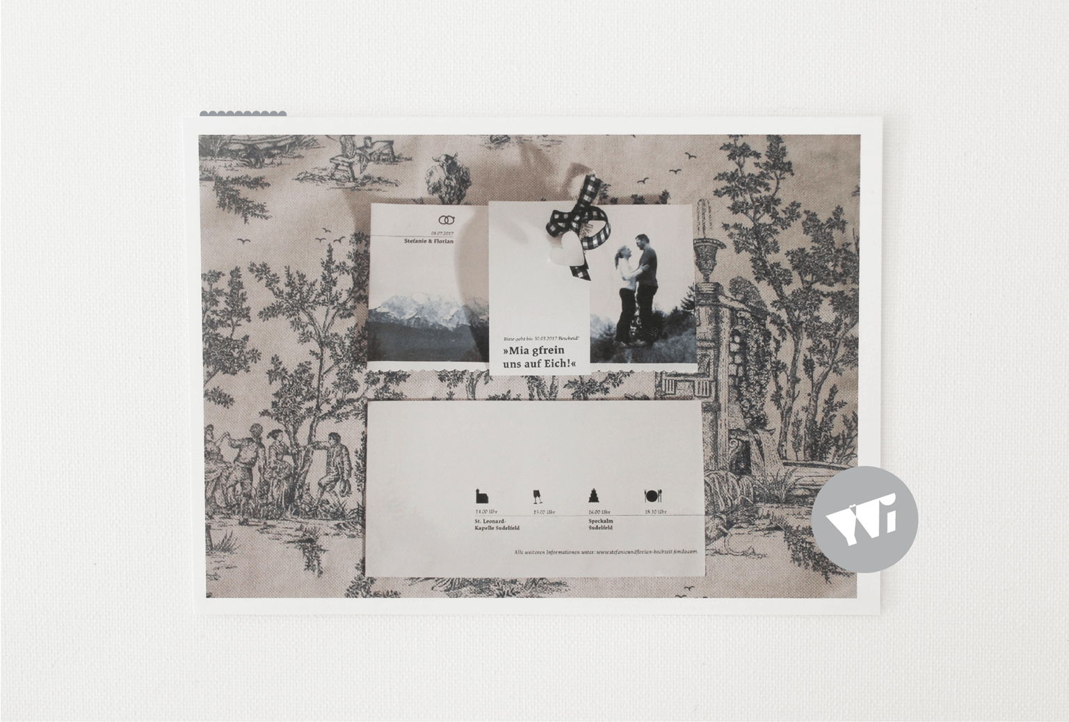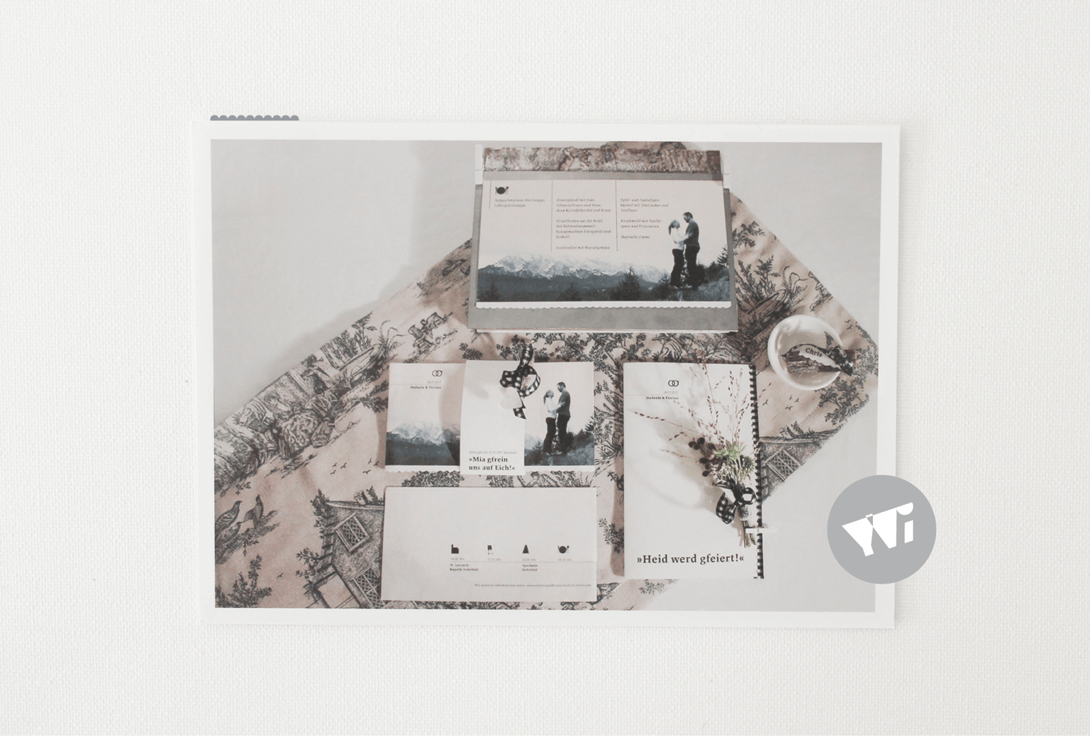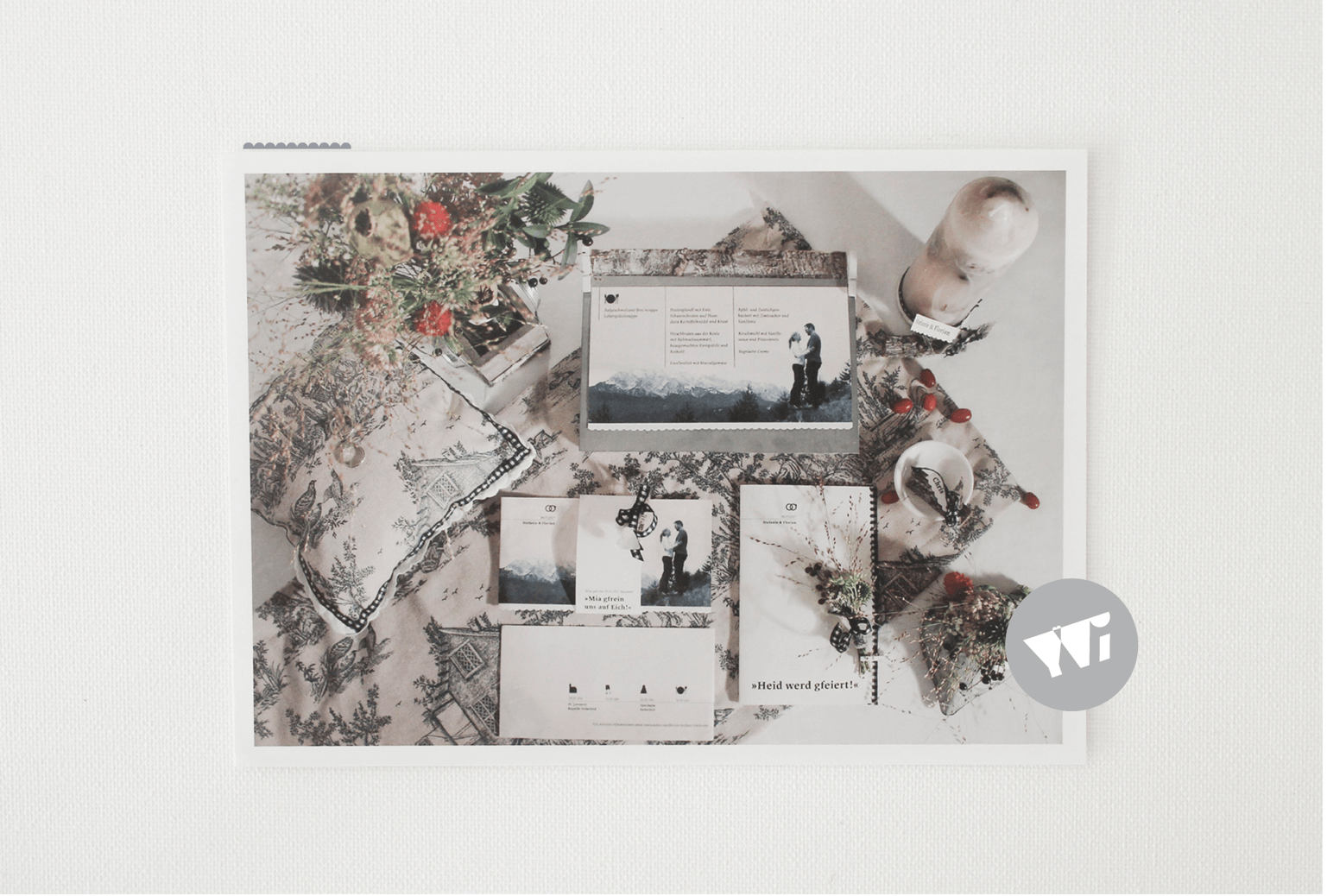 Nun folgt die Konzeptentwicklung. Hierbei werde ich unter anderem ein Moodboard erstellen, indem ich auf eure Vorstellungen bezüglich Motto, Anmutung, Stil, Gestaltungselemente, Farbigkeit, Materialität, Muster, Bilder, Fotos, Illustrationen, Typographie, Veredelungen, Format, florale Elemente... eingehe. Es ist mir bei der Konzeptentwicklung sehr wichtig, dass immer auch ein stückweit eure ganz persönliche, individuelle Liebesgeschichte und Einzigartigkeit als Brautpaar durchscheint.