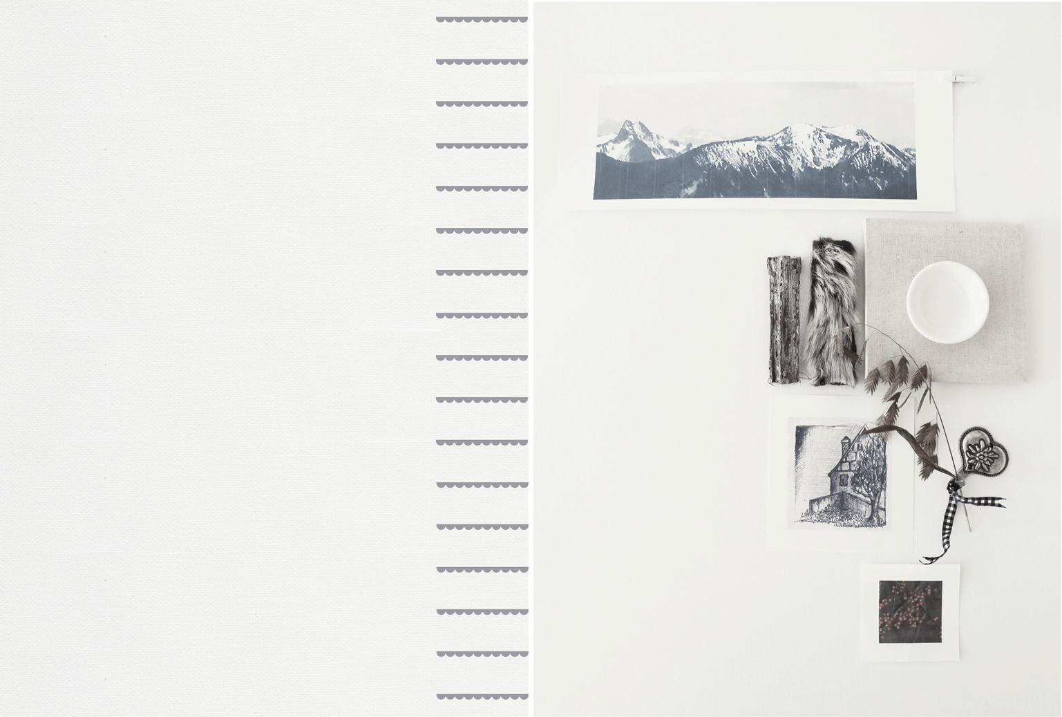 Bergpanorama, Landschafts-zeichnung, Kugelschreiber, Herzformen