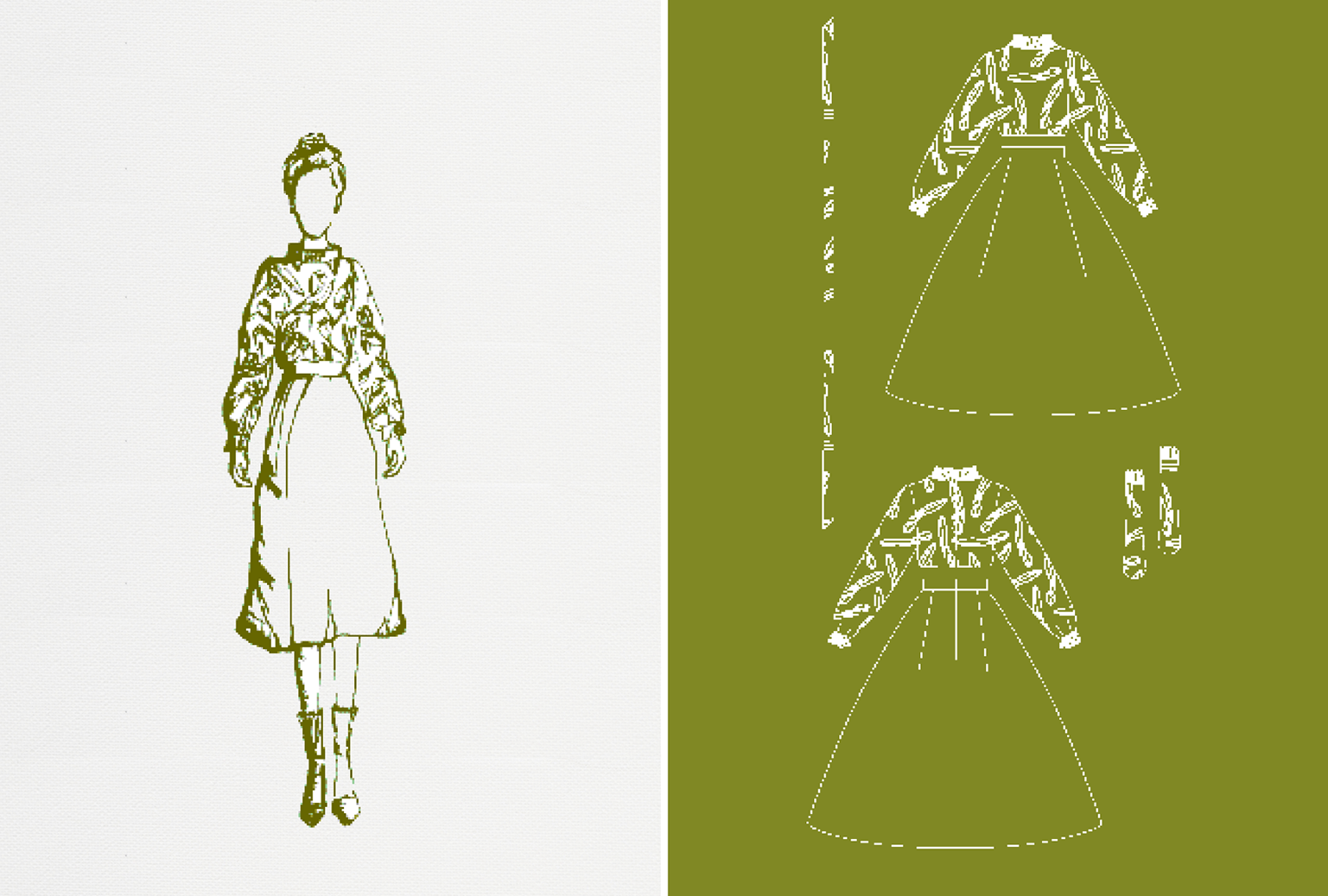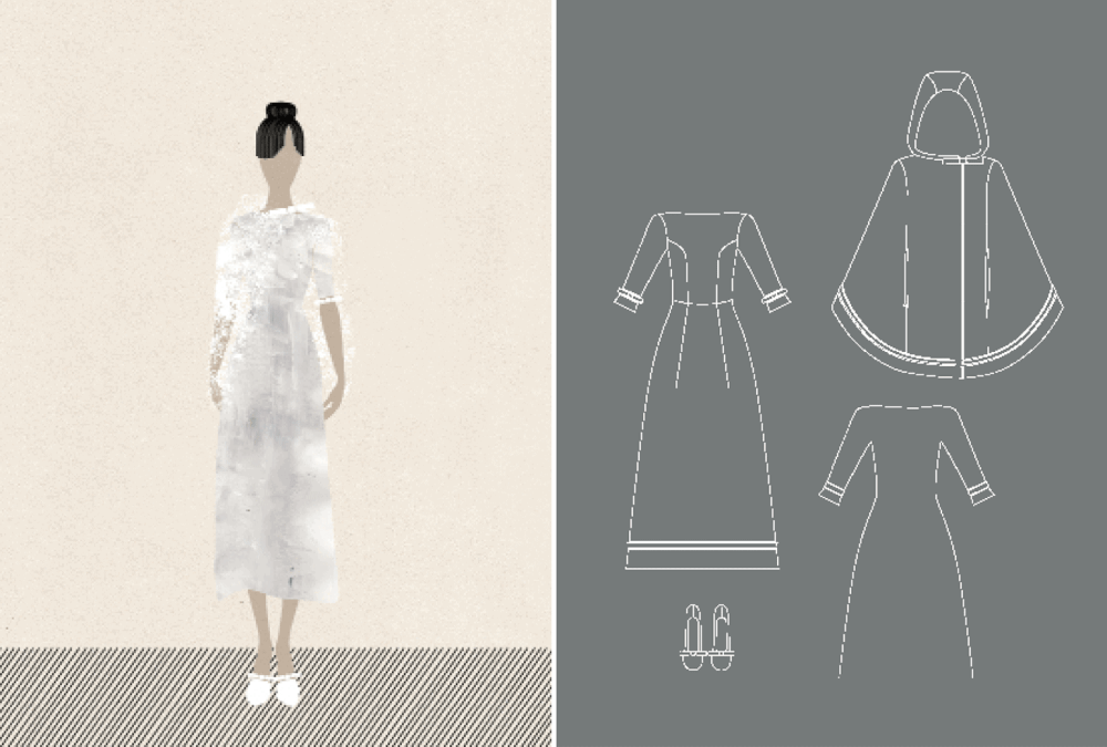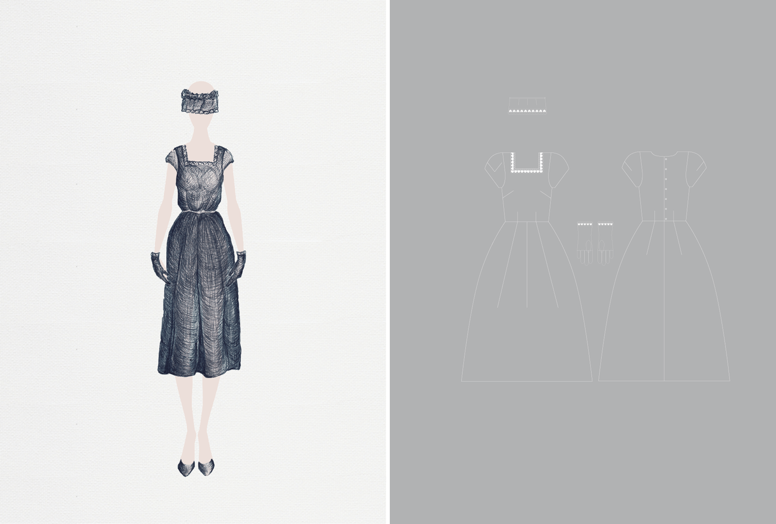 Falls ihr, wie bereits erwähnt, auch den Entwurf des Hochzeitskleides wünscht, wird zu dem, von euch ausgewählten Finalentwurf, nun eine technische Zeichnung von mir erstellt. Diese dient als Fertigungsvorlage für die von euch gewählte Maßschneiderei.