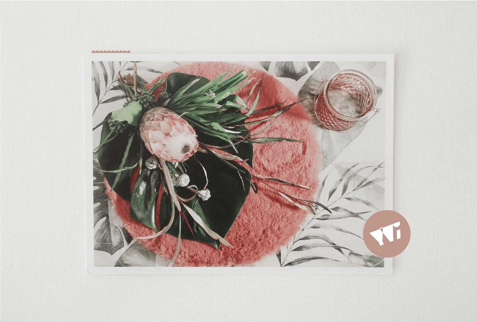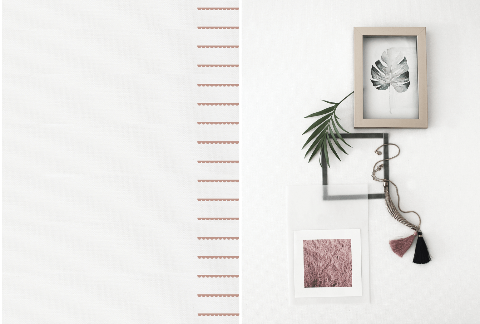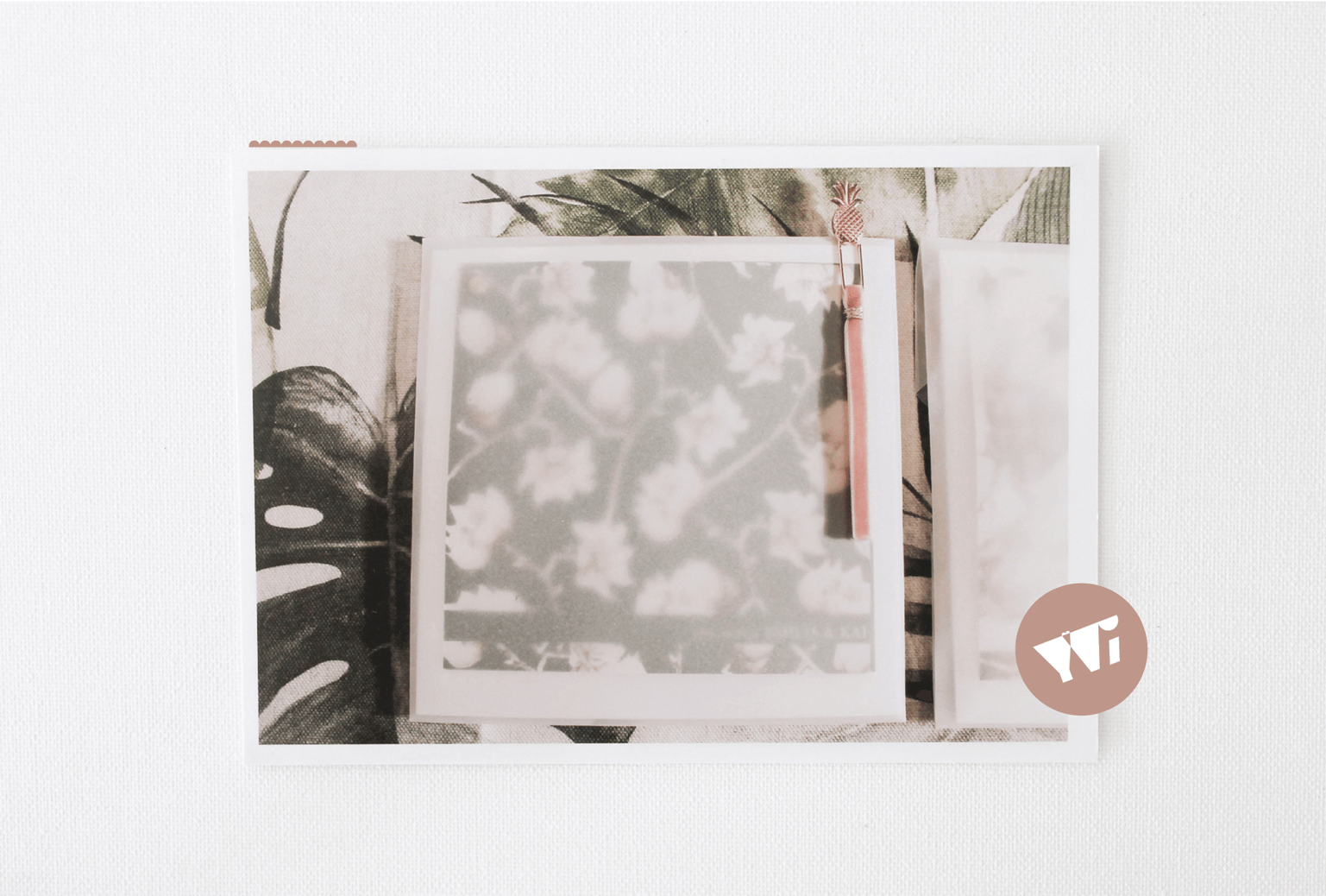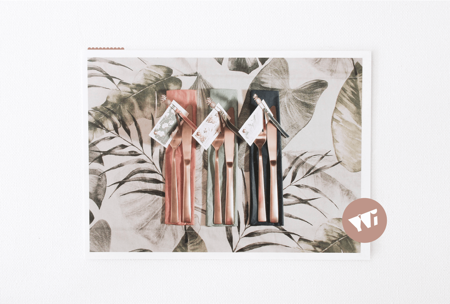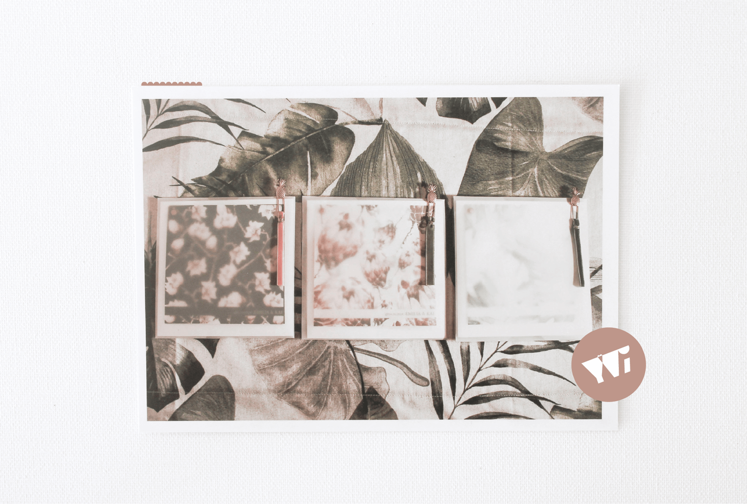 Samtbänder, Klammern, Goldaccessoires, tropische Elemente,