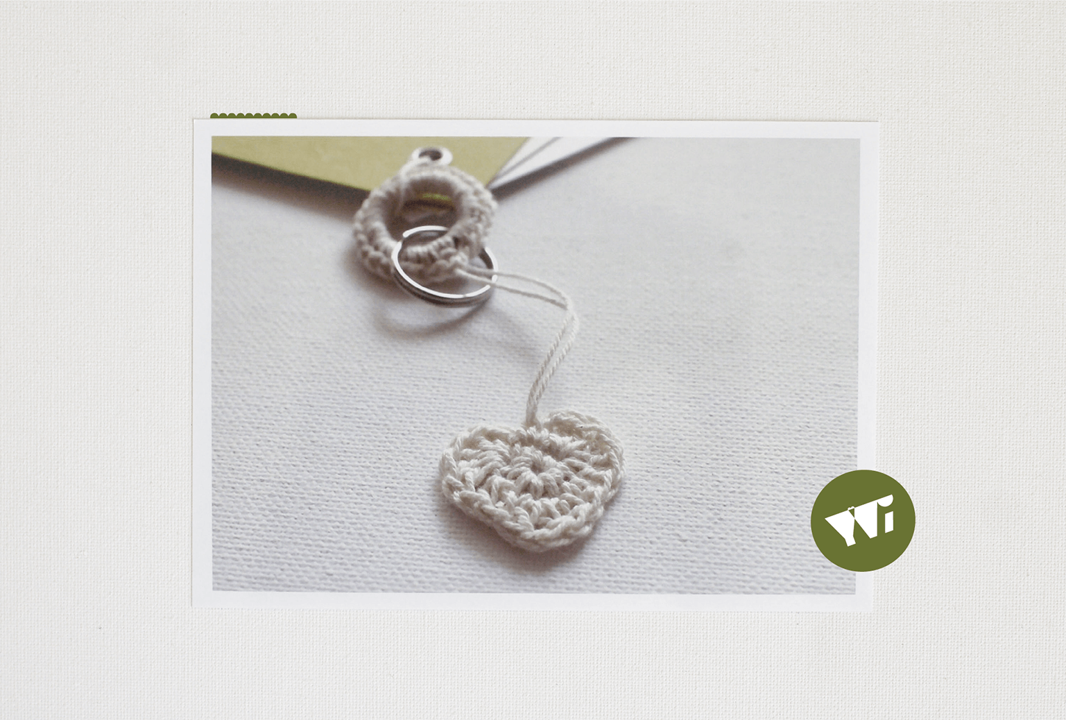 Häkelherzen, karierte Bänder, Holzklammern