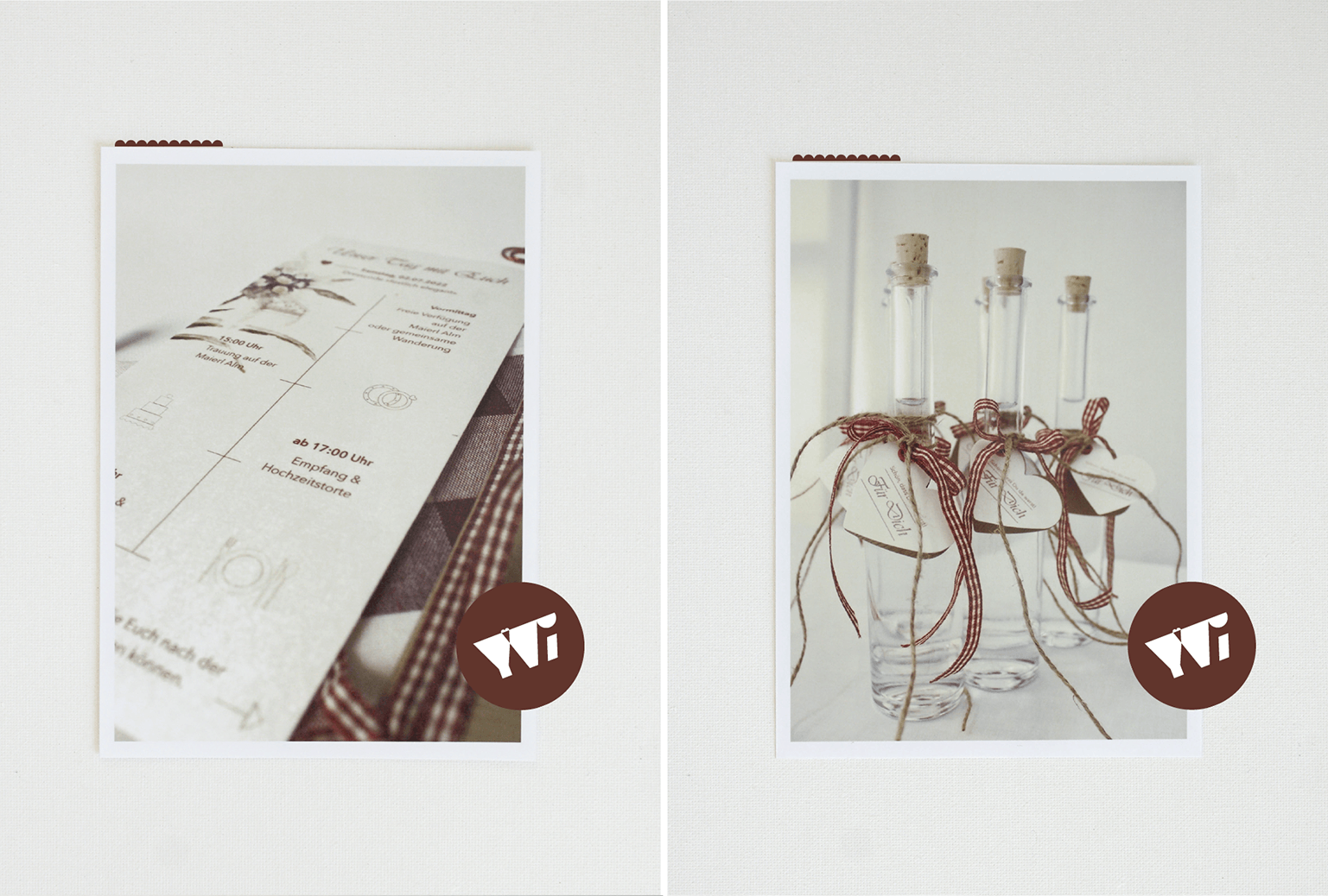 Zu Beginn der Umsetzungsphase steht die Ausarbeitung sämtlicher Designelemente hinsichtlich des Leistungsbereichs Papeterie, damit diese baldmöglichst in den Druck gegeben werden können. Denn schließlich möchtet ihr eure Save-the-Date-Karten ja nicht erst kurz vor der Hochzeit an eure Gäste verteilen. In dieser Phase kümmere ich mich auf euren Wunsch hin, auch um die Beschaffung der im Leistungsbereich Papeterie anfallenden Schmuckelemente, wie Bändchen, Siegel,...