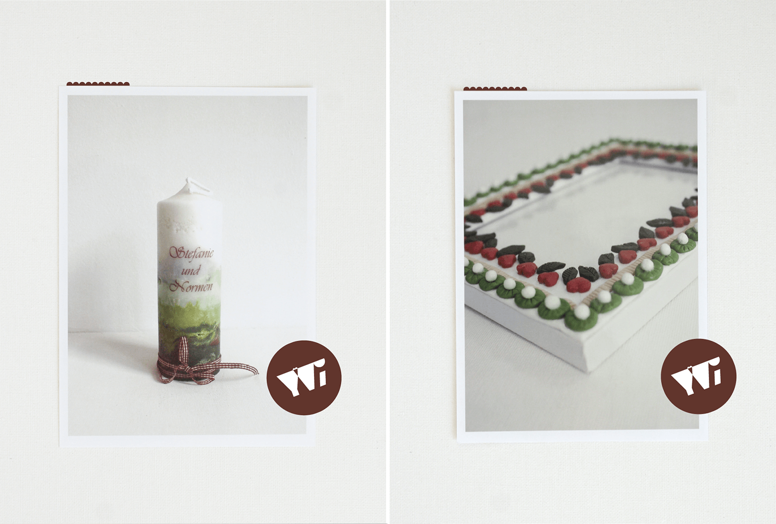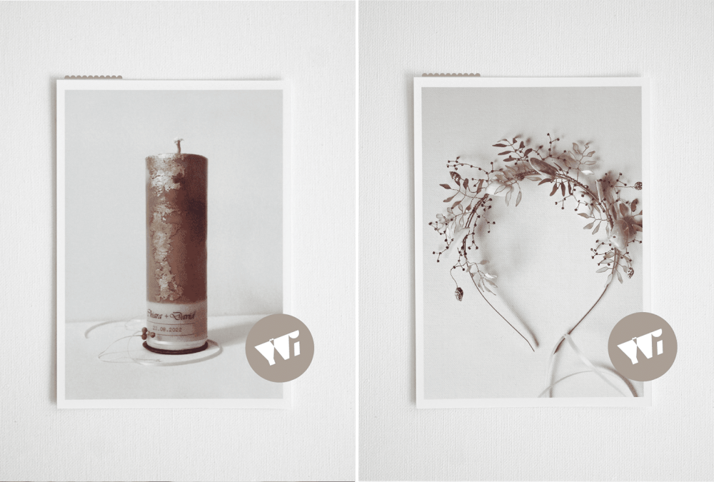 Anschließend geht es an die Ausarbeitung sämtlicher Designelemente der weiteren, von euch gewünschten, Leistungsbereiche, wie z. B. Hochzeitskerze, Näharbeiten, Dekoration der Hochzeitslocation, sowie der Gestaltung der Gastgeschenke. Auch hierbei kümmere ich mich auf euren Wunsch hin gerne um die Beschaffung der anfallenden Materialien sowie Dekorationsgegenstände.