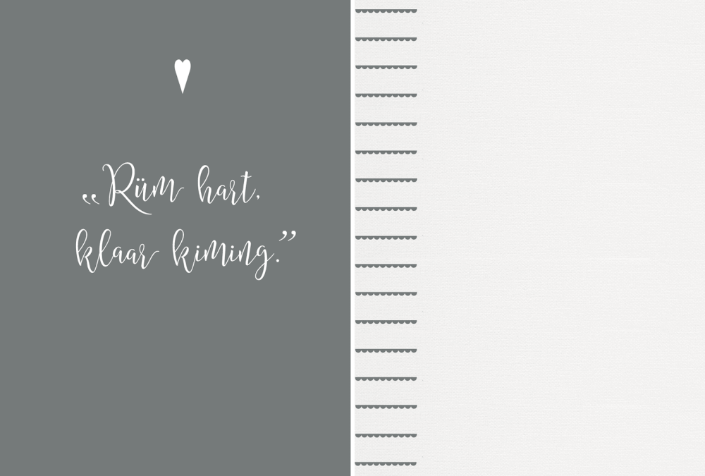 „Rüm hart, klaar Kiming", eine nordfriesische Lebensweisheit, welche soviel bedeutet, wie: „Weites Herz, klarer Horizont"