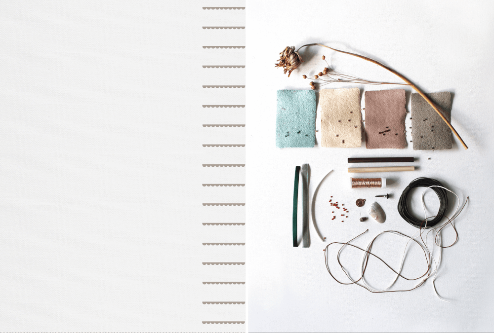 biologisch abbaubares Papier aus Gras, Stroh, und Baumwolle aus der Kollektion „Bio Cycle" der Büttenpapierfabrik Gmund, Kraftpapier