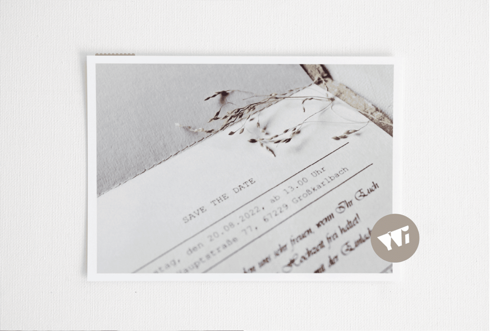 In dieser Phase bekommt ihr nun den ersten Entwurf von mir in dem von euch gewünschten Dateiformat zugesandt. Hierbei arbeite ich in Anlehnung an euer Designkonzept zunächst ein Element der Hochzeitspapeterie aus, z. B. die „Save-the-Date Karte“. Das ausgewählte Design legt den Grundstein für alle weiteren Elemente der Umsetzungsphase.